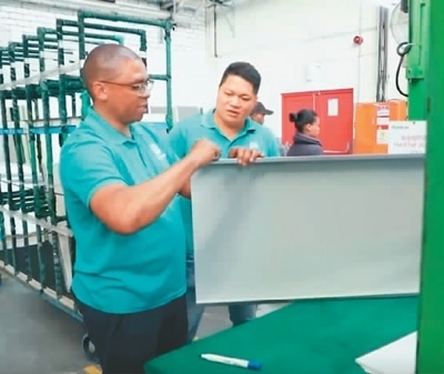 伊萬(左)在海信南非工業(yè)園冰箱工廠工作。
