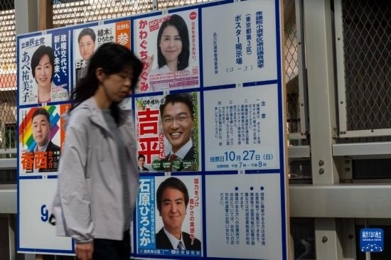 10月15日,行人走過日本東京的一處眾議院議員選舉公示板。新華社記者 張笑宇 攝