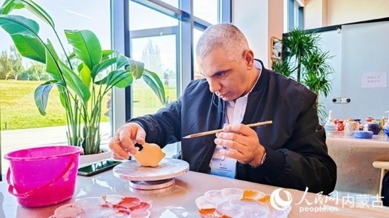 “今天是第一次體驗(yàn)?zāi)嗨埽诶蠋煹膸椭挛覀冏隽艘粋€(gè)碗,我覺(jué)得很有意思,我會(huì)把它帶回家鄉(xiāng),展示給我的朋友們?!卑<坝浾唏R贊·伊斯蘭姆完成了自己的第一個(gè)泥塑作品,成就感滿滿。呼和浩特雕塑藝術(shù)館的體驗(yàn)之旅也給他留下了深刻的印象,“呼和浩特有著豐富的歷史文化,很高興能有機(jī)會(huì)體驗(yàn)了解,我認(rèn)為這可以吸引很多游客來(lái)這里游覽。我們國(guó)家也有著豐富的歷史文化,我們兩國(guó)有很多共同點(diǎn),我覺(jué)得文化交流能推動(dòng)我們的合作關(guān)系邁向新的階段?!?/p>
