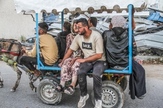 這是10月19日在加沙地帶拍攝的逃離加沙地帶北部杰巴利耶難民營(yíng)的民眾。新華社發(fā)(馬哈茂德·扎基攝)