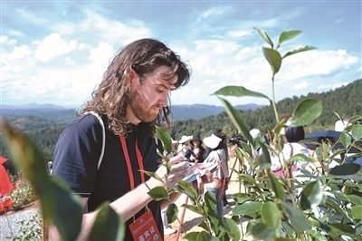 2024“鼓嶺緣”中美青年交流周期間,北京大學(xué)燕京學(xué)堂研一的美國(guó)學(xué)生葛逸思在為種植的友誼樹寫上寄語。新華社記者 林善傳攝