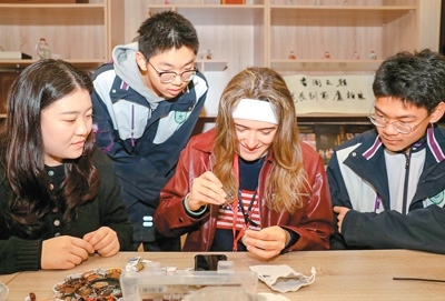 在隨后的手工環(huán)節(jié),來自美國佛羅里達(dá)州賽普萊斯灣高中的伊麗莎白·埃倫維·阿桑森體驗(yàn)了中藥香囊制作,向小伙伴們展示了自己的成果。“中藥香囊的香氣很宜人,我非常喜歡。制作過程本身就充滿了文化魅力?!彼f。