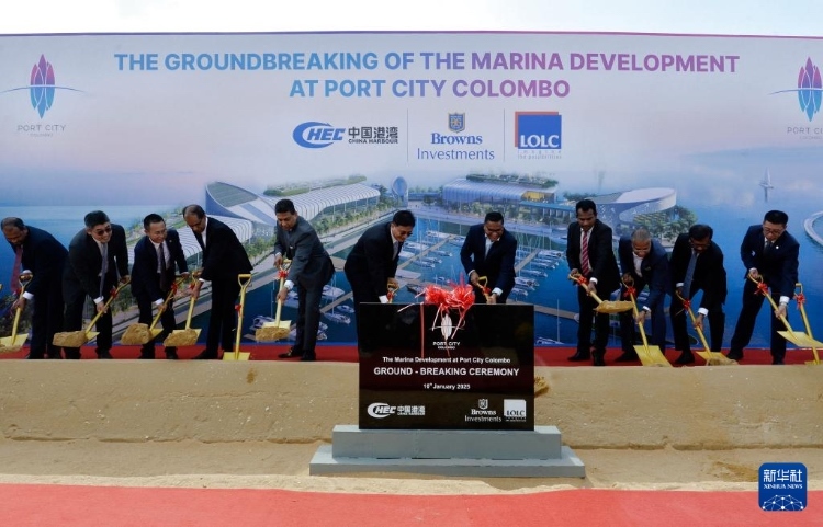 1月10日,嘉賓為斯里蘭卡科倫坡港口城游艇碼頭商業(yè)項(xiàng)目奠基。