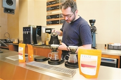 法國知名精品咖啡烘焙品牌TANAT今年推出兩款產(chǎn)自云南保山紅龍莊園的小??Х犬a(chǎn)品。該品牌首席烘焙師托馬·克萊芒表示,所選的云南咖啡豆口感柔和細膩,兼具豐富的層次與地域特色。圖為該品牌位于巴黎的一家門店內(nèi),咖啡師在沖泡云南咖啡。