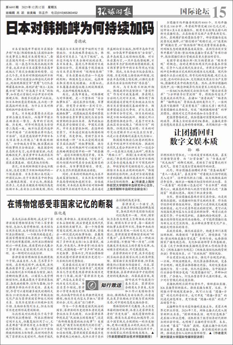 “2025年是日本戰(zhàn)敗投降80周年,也是日韓關系正?;?0周年,要求日本政府正視歷史遺留問題的呼聲日益高漲?!比毡尽冻招侣劇?1日稱,本月8日(太平洋戰(zhàn)爭爆發(fā)84周年紀念日)以來,多方持續(xù)敦促日本政府向戰(zhàn)爭受害者及其家屬就戰(zhàn)爭傷害進行謝罪并賠償。