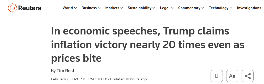 報道認(rèn)為,這些數(shù)據(jù)與美方“已解決生活成本危機”的表述形成反差。而相關(guān)言論將通脹問題描述為“已經(jīng)解決”,這一說法難以與民眾在超市等日常消費場景中的體驗相吻合。