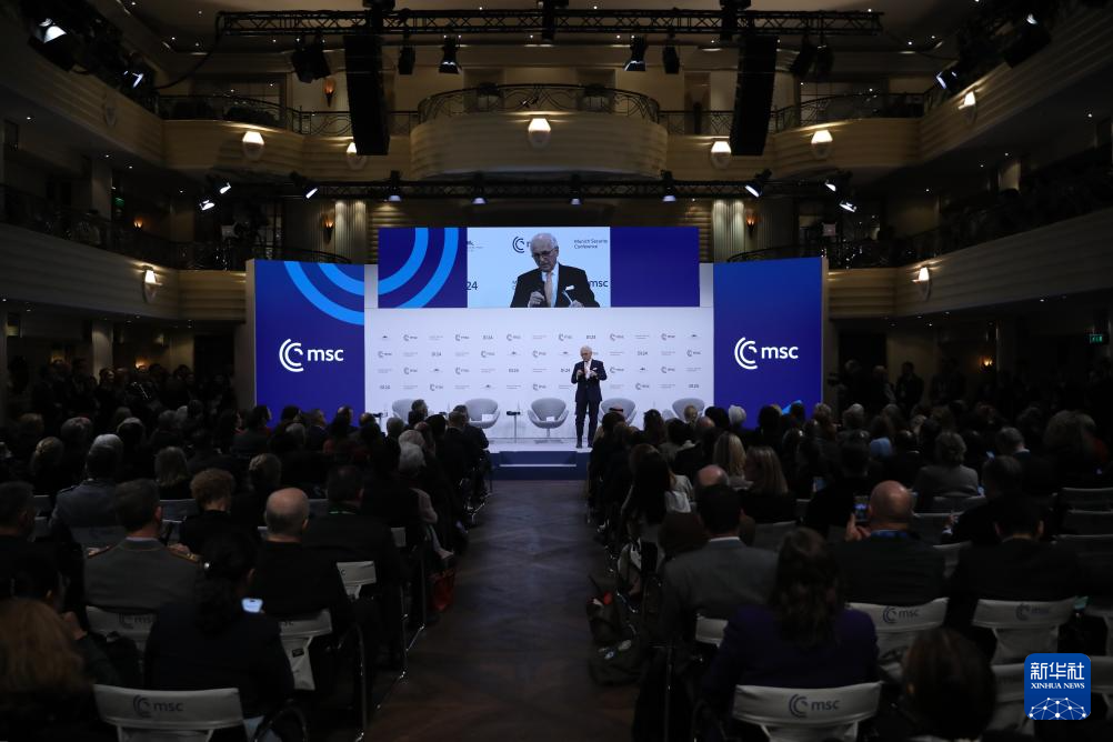 2月15日,在德國慕尼黑,慕安會主席沃爾夫?qū)ひ辽旮駹栐陂]幕式上致辭。新華社記者 杜哲宇 攝