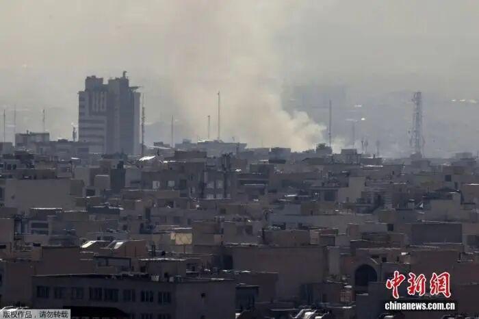 據(jù)卡塔爾阿拉伯電視臺(tái)2月28日?qǐng)?bào)道,伊朗首都德黑蘭市中心發(fā)生爆炸。圖為德黑蘭市中心發(fā)生爆炸后,濃煙沖天。