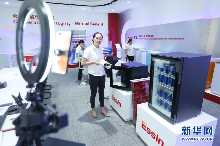 6月15日,在青島營(yíng)上電器有限公司,營(yíng)銷人員通過廣交會(huì)直播平臺(tái)推介出口到海外市場(chǎng)的冰箱。當(dāng)日,第127屆廣交會(huì)拉開帷幕。這是我國(guó)首次將廣交會(huì)整體性“搬上云端”。本屆廣交會(huì)會(huì)期10天,保持24小時(shí)不間斷,按16大類商品設(shè)置50個(gè)展區(qū),180萬件展品同期上線展示。新華社發(fā)(梁孝鵬攝)