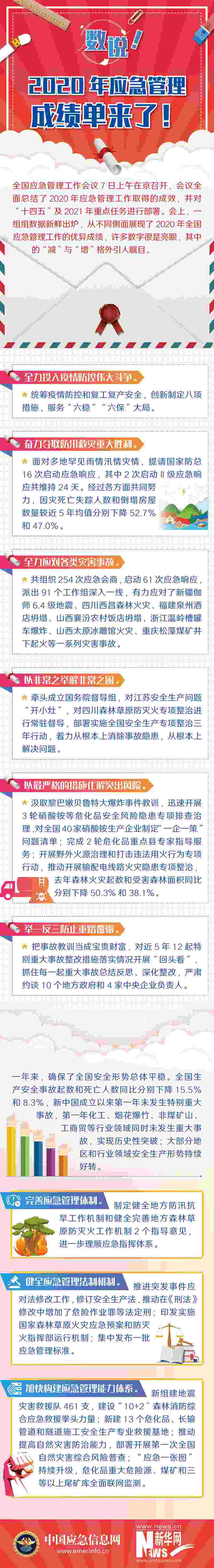 會(huì)議指出,面對(duì)各種風(fēng)險(xiǎn)挑戰(zhàn),經(jīng)過(guò)各方面共同努力,2020年全國(guó)生產(chǎn)安全事故起數(shù)和死亡人數(shù)同比分別下降15.5%和8.3%,全國(guó)自然災(zāi)害死亡失蹤人數(shù)、生產(chǎn)安全事故起數(shù)和死亡人數(shù)均是新中國(guó)成立以來(lái)最低。