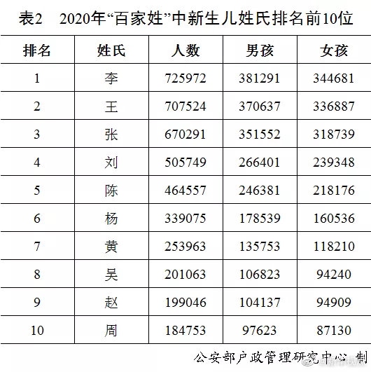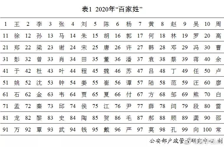 公安部發(fā)布2020年全國(guó)姓名報(bào)告