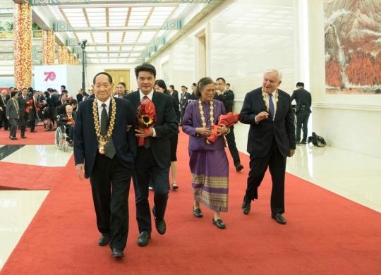 2019年9月29日,國(guó)家勛章和國(guó)家榮譽(yù)稱(chēng)號(hào)獲得者在儀式后步出人民大會(huì)堂金色大廳。經(jīng)中共中央批準(zhǔn),中華人民共和國(guó)國(guó)家勛章和國(guó)家榮譽(yù)稱(chēng)號(hào)頒授儀式于9月29日上午10時(shí)在北京人民大會(huì)堂隆重舉行。新華社記者王曄攝
