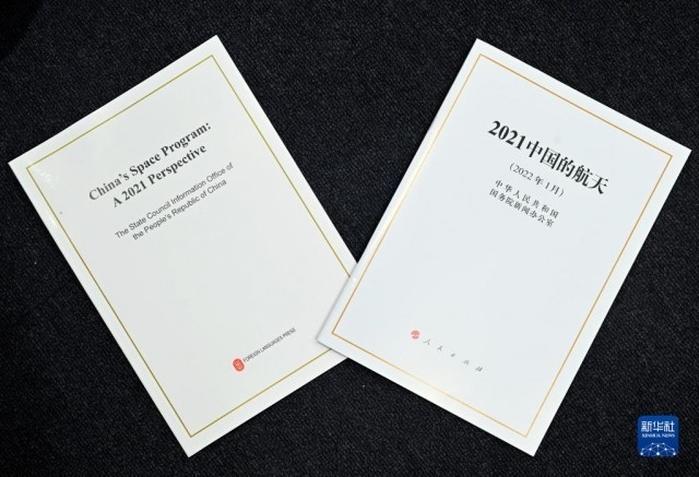 這是1月28日拍攝的《2021中國(guó)的航天》白皮書。當(dāng)日,國(guó)務(wù)院新聞辦公室發(fā)布《2021中國(guó)的航天》白皮書,并在北京舉行新聞發(fā)布會(huì)?!⌒氯A社記者 金良快 攝