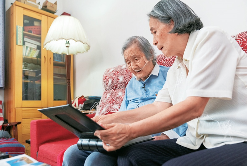 圖為2021年6月23日,在北京的家中,瞿獨(dú)伊(左)和女兒李曉云向記者展示家人的相冊(cè)。 新華社記者 才揚(yáng)/攝