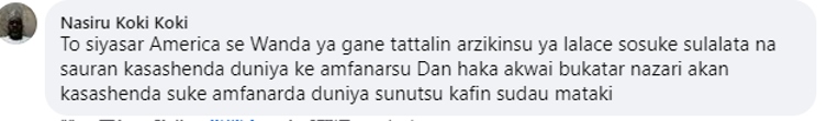 尼日利亞網(wǎng)友納斯魯(Nasiru Koki Koki)留言:“正是美國自身經(jīng)濟(jì)的衰退,使得它如此迫切地想要阻止其他國家的經(jīng)濟(jì)發(fā)展,面對(duì)美國的挑釁,中國應(yīng)采取審慎的態(tài)度?!?/p>