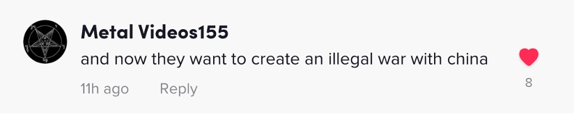 網(wǎng)友Metal Videos155:“不僅如此,現(xiàn)在美國還想要發(fā)動(dòng)一場(chǎng)非法的對(duì)華戰(zhàn)爭(zhēng)。”