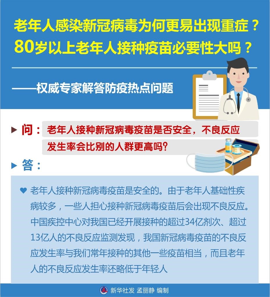 3.問:老年人接種新冠病毒疫苗是否安全,不良反應(yīng)發(fā)生率會比別的人群更高嗎?