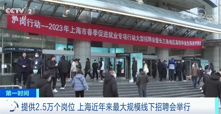 2月25日,“2023年上海市春季促進(jìn)就業(yè)專項(xiàng)行動大型招聘會暨長三角地區(qū)高校畢業(yè)生擇業(yè)對接會”舉行。這次招聘會是2020年以來上海舉辦的最大規(guī)模的線下招聘會,1200余家招聘單位提供招聘崗位超過2.5萬個。