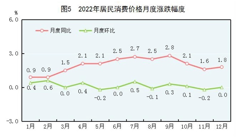 全年居民消費(fèi)價(jià)格比上年上漲2.0%。工業(yè)生產(chǎn)者出廠價(jià)格上漲4.1%。工業(yè)生產(chǎn)者購(gòu)進(jìn)價(jià)格上漲6.1%。農(nóng)產(chǎn)品生產(chǎn)者價(jià)格[9]上漲0.4%。12月份,70個(gè)大中城市中,新建商品住宅銷售價(jià)格同比上漲的城市個(gè)數(shù)為16個(gè),持平的為1個(gè),下降的為53個(gè);二手住宅銷售價(jià)格同比上漲的城市個(gè)數(shù)為6個(gè),下降的為64個(gè)。