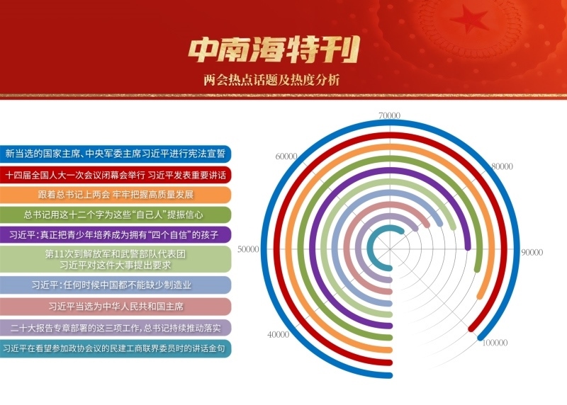 3月,世界目光,聚焦北京。近3000名中外記者采訪報道全國兩會。央視網(wǎng)“智聞”系統(tǒng)提取分析兩會期間全網(wǎng)時政新聞熱點顯示,習近平總書記的兩會關(guān)切吸引全網(wǎng)目光,新征程領(lǐng)路人的人民情懷成為網(wǎng)友“兩會印象”最深刻的主題之一。