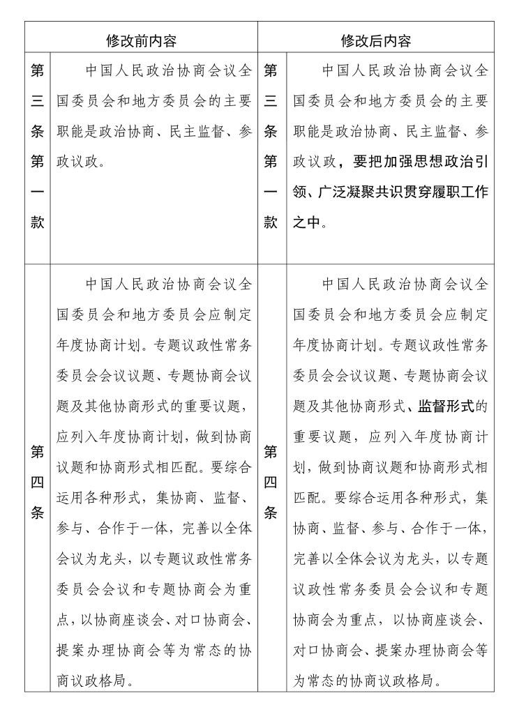 中國(guó)人民政治協(xié)商會(huì)議章程 修改前后內(nèi)容對(duì)照表(4) 新華社發(fā)