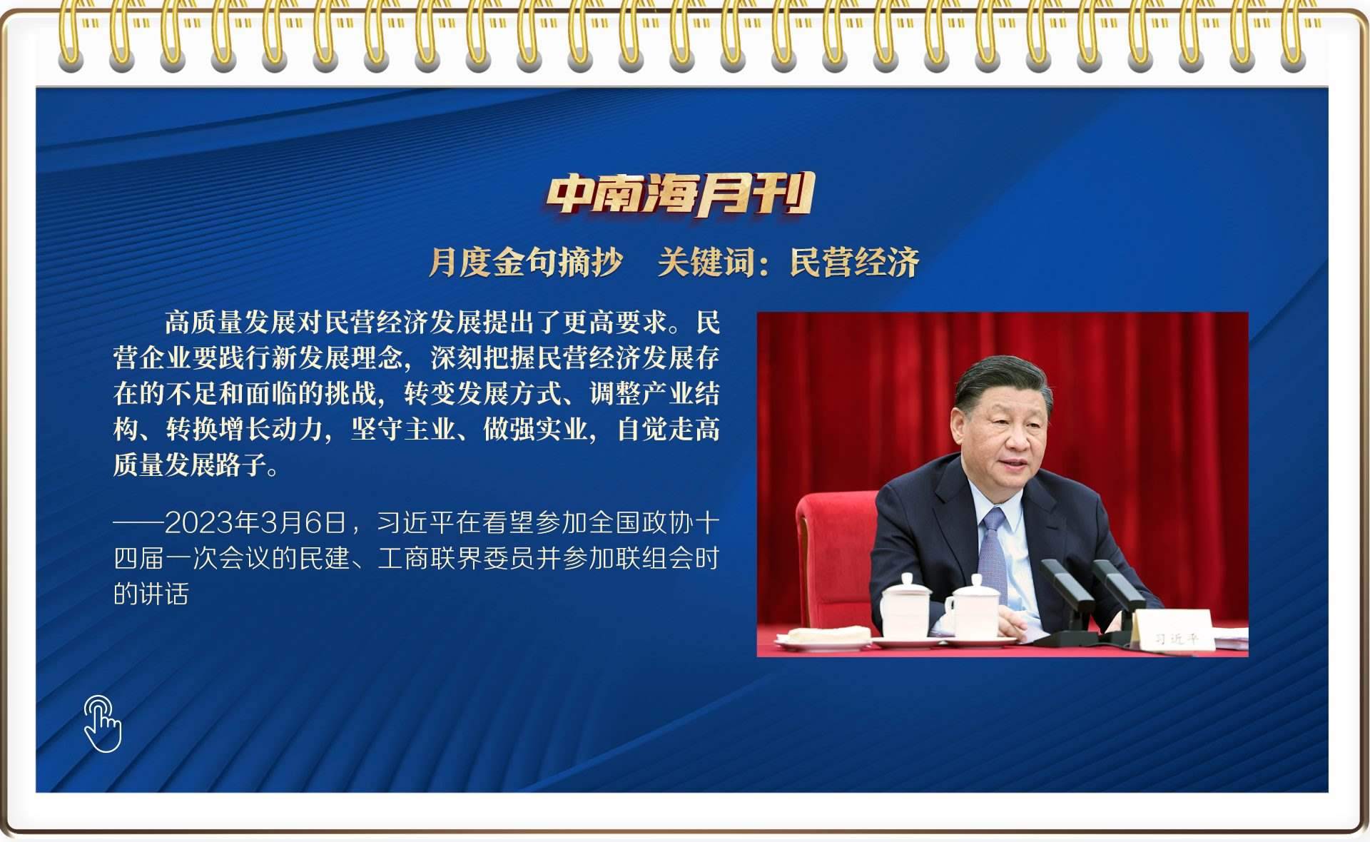 次日,總書記參加以經(jīng)濟(jì)界人士為主的民建、工商聯(lián)界委員聯(lián)組會(huì)。春日的暖陽中,北京友誼賓館聚英廳內(nèi)討論熱烈。迎著委員們熱切的目光,總書記為民營(yíng)企業(yè)和民營(yíng)企業(yè)家提振信心:“始終把民營(yíng)企業(yè)和民營(yíng)企業(yè)家當(dāng)作自己人”“放開手腳,輕裝上陣,專心致志搞發(fā)展”“在民營(yíng)企業(yè)遇到困難的時(shí)候給予支持,在民營(yíng)企業(yè)遇到困惑的時(shí)候給予指導(dǎo)”……聲聲關(guān)切,統(tǒng)籌破與立,把握制與治。其落點(diǎn),也在高質(zhì)量發(fā)展。