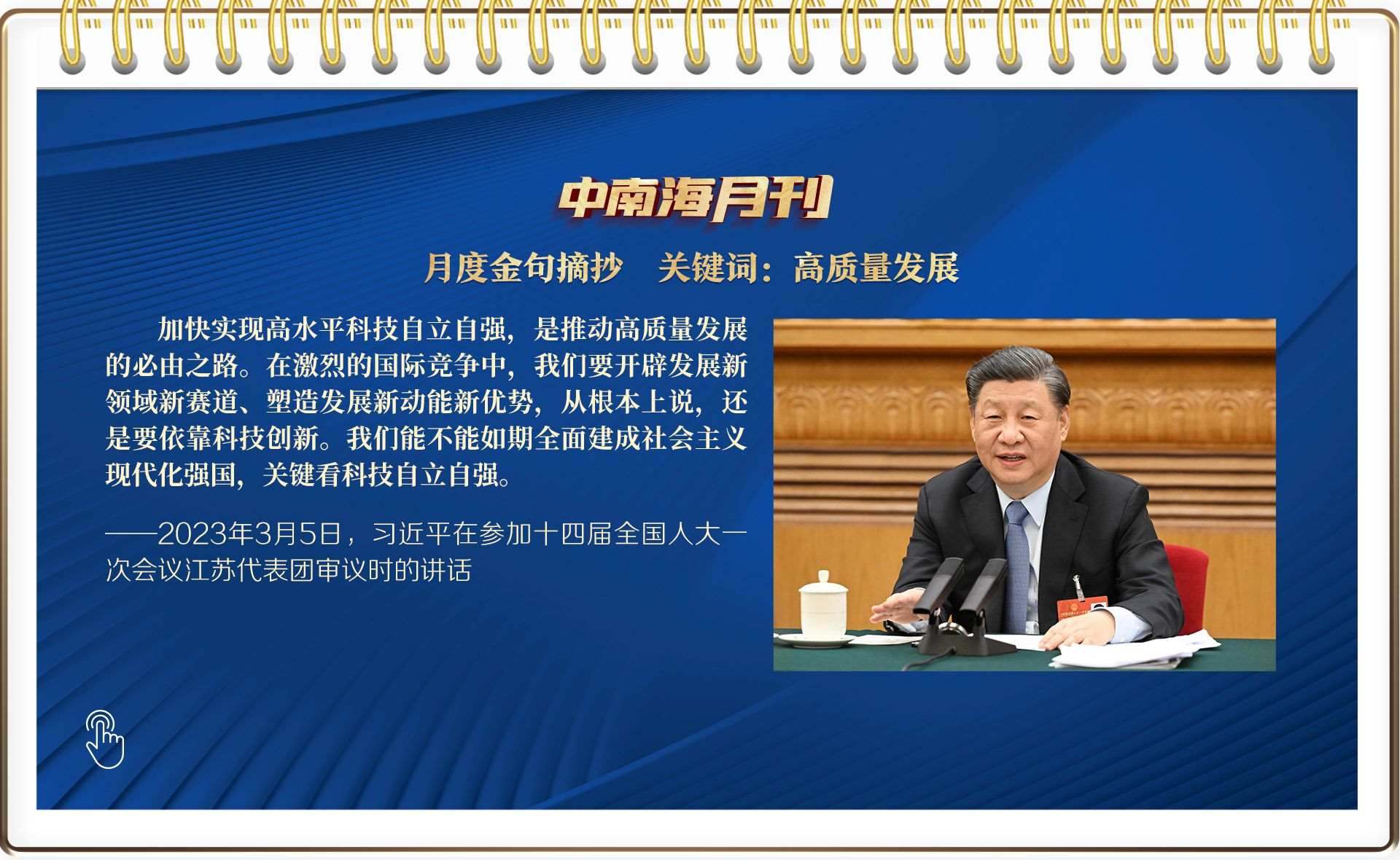 5日,今年全國(guó)兩會(huì)首次到團(tuán)組,總書記以高質(zhì)量發(fā)展為題,從“制造業(yè)必須筑牢”聊到農(nóng)業(yè)現(xiàn)代化,再談到太湖水質(zhì)……他詳細(xì)闡述未來中國(guó)高質(zhì)量發(fā)展的發(fā)力點(diǎn)——高水平科技自立自強(qiáng)、加快構(gòu)建新發(fā)展格局、推進(jìn)農(nóng)業(yè)現(xiàn)代化、人民幸福安康,為未來中國(guó)發(fā)展繪就新圖景。