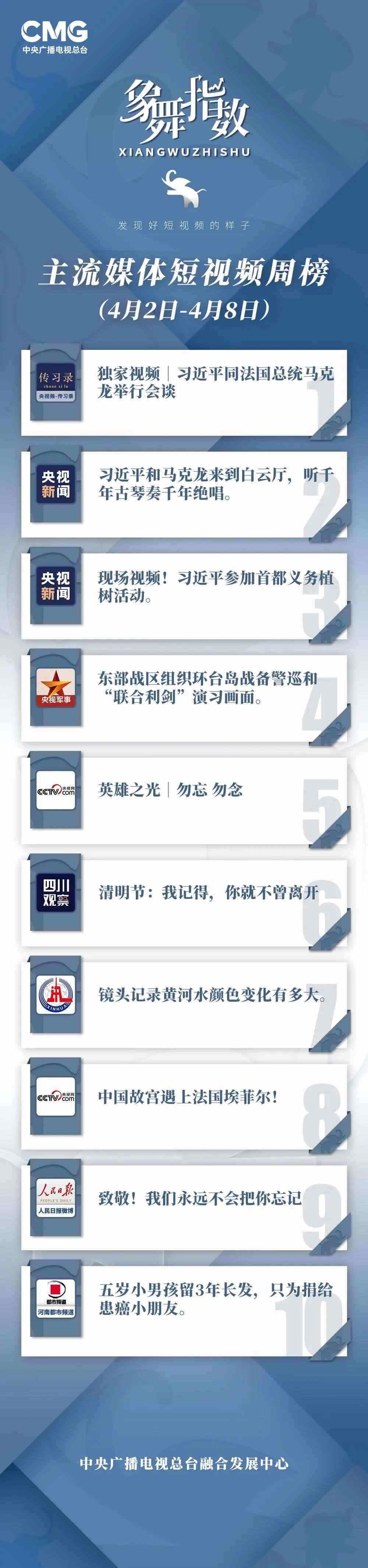 中央廣播電視總臺(tái)“象舞指數(shù)”評(píng)議品牌,推出主流媒體短視頻周榜、總臺(tái)短視頻周榜。在2023年4月2日—4月8日,這些內(nèi)容引發(fā)大眾關(guān)注: