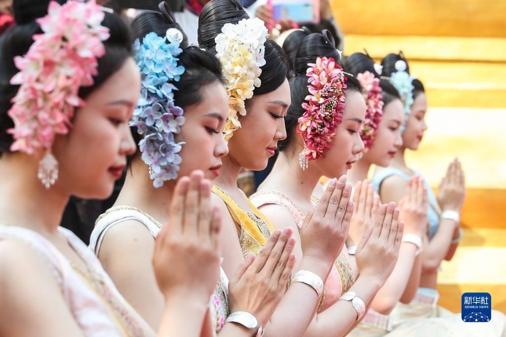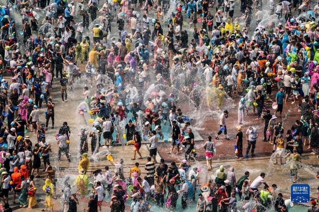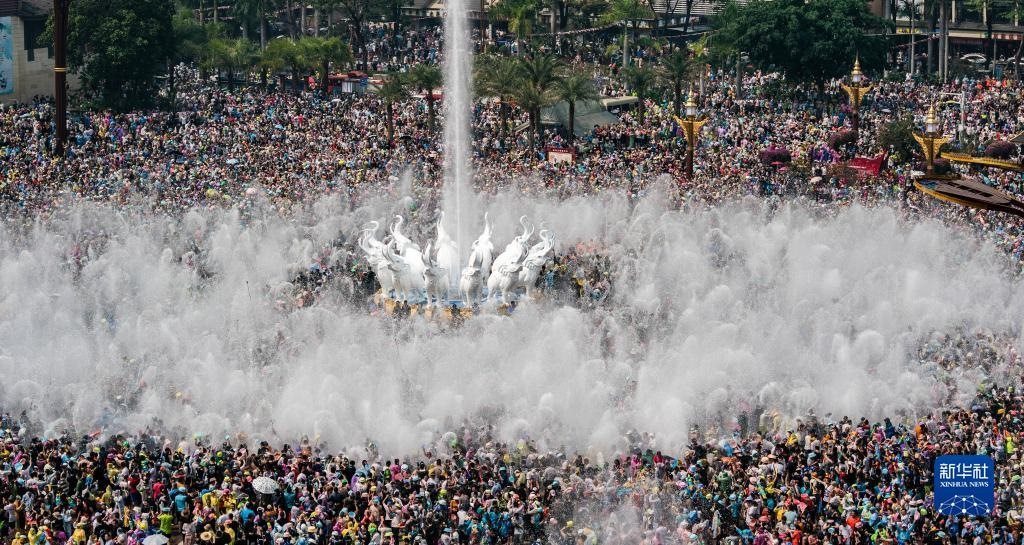 當(dāng)日,云南省西雙版納傣族自治州舉行傣歷新年取水儀式及潑水狂歡,數(shù)萬(wàn)名各族群眾和游客在景洪市用相互潑水的方式互送祝福、傳遞歡樂。