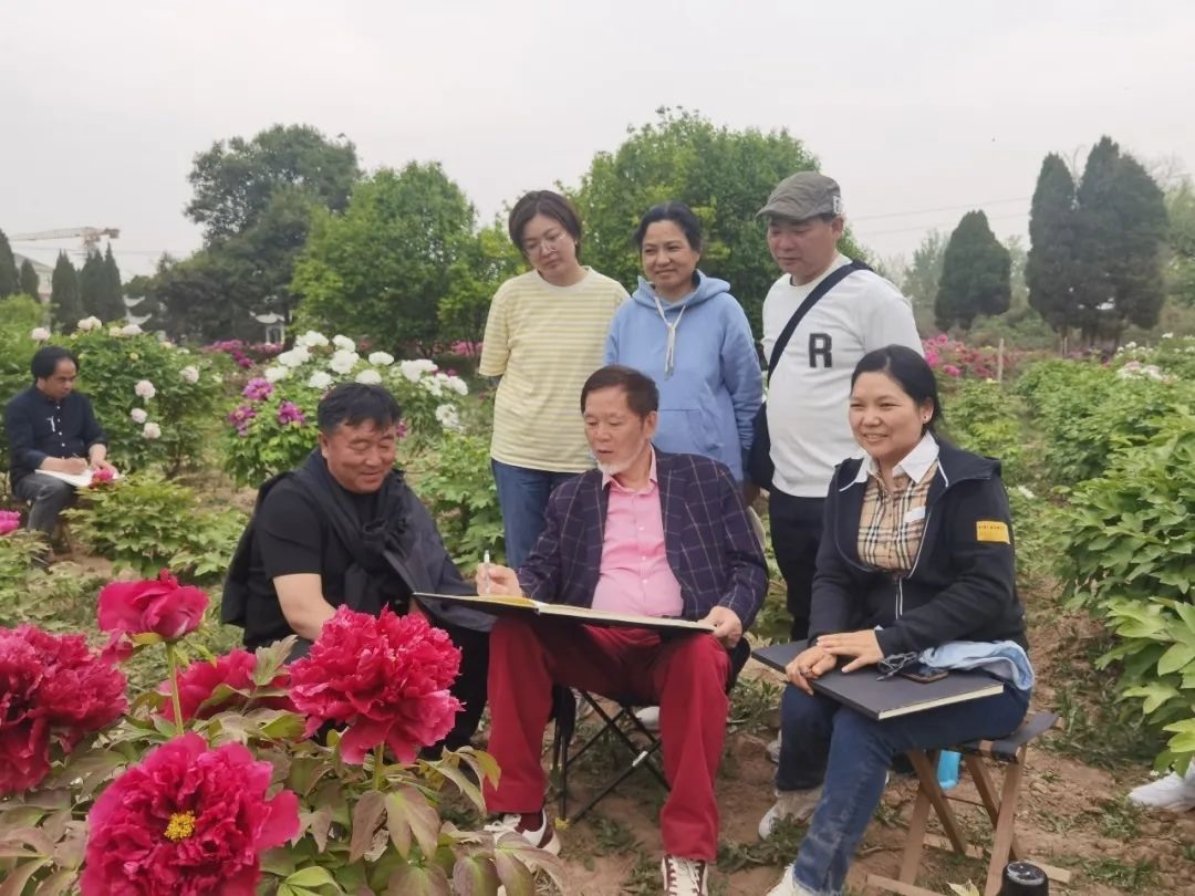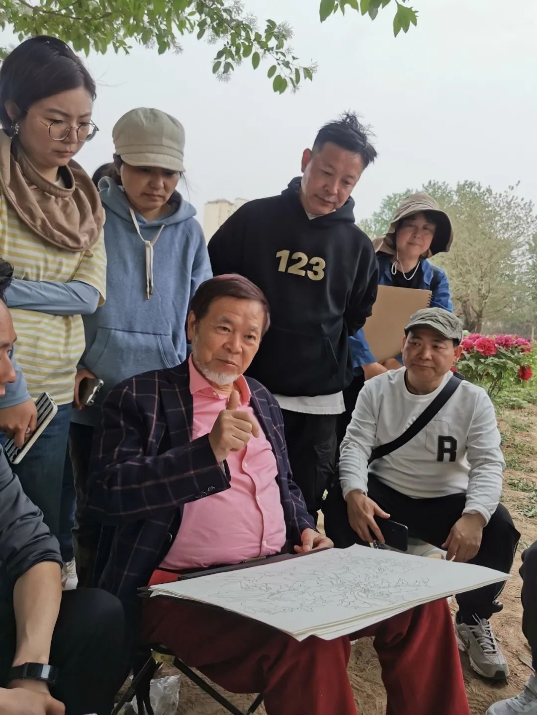 自1975年29歲的何水法先生以赤子之心,首次只身赴菏澤,48年來,為畫牡丹,寫其牡丹之真情、寫其牡丹之風(fēng)骨,寫其國花繁榮富強之真諦。用何水法先生世紀(jì)之初所言:“寫生是畫家與生活的對話”。藝術(shù)家也要不斷地站在時代的前列,站在歷史的高位,不斷思索,不斷地刷新繪畫語言。要緊隨時代發(fā)展的需要,不斷突破新題材、突破新意境。因此他今年又親率眾學(xué)生第十五次來菏澤深入考察,發(fā)揮示范引領(lǐng)作用,體驗生活、開闊思維,為謳歌人民、謳歌新時代,進行新的藝術(shù)創(chuàng)造。