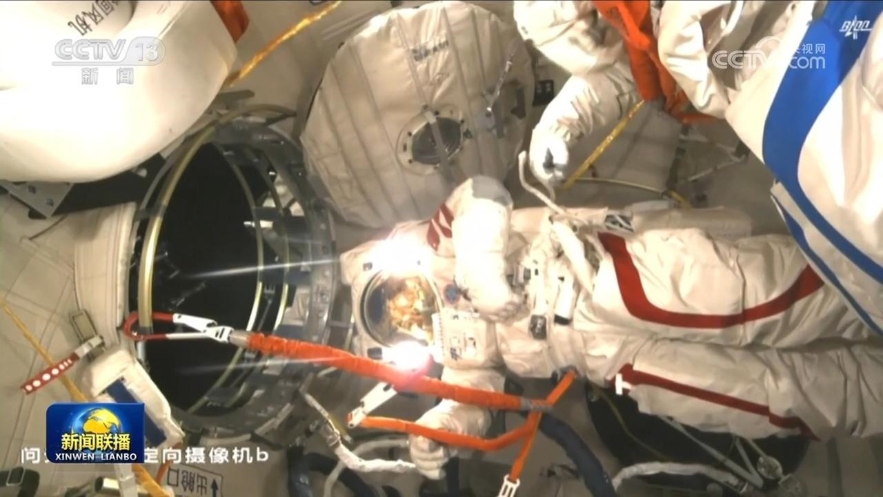 航天員費(fèi)俊龍打開出艙艙門,成功出艙。
