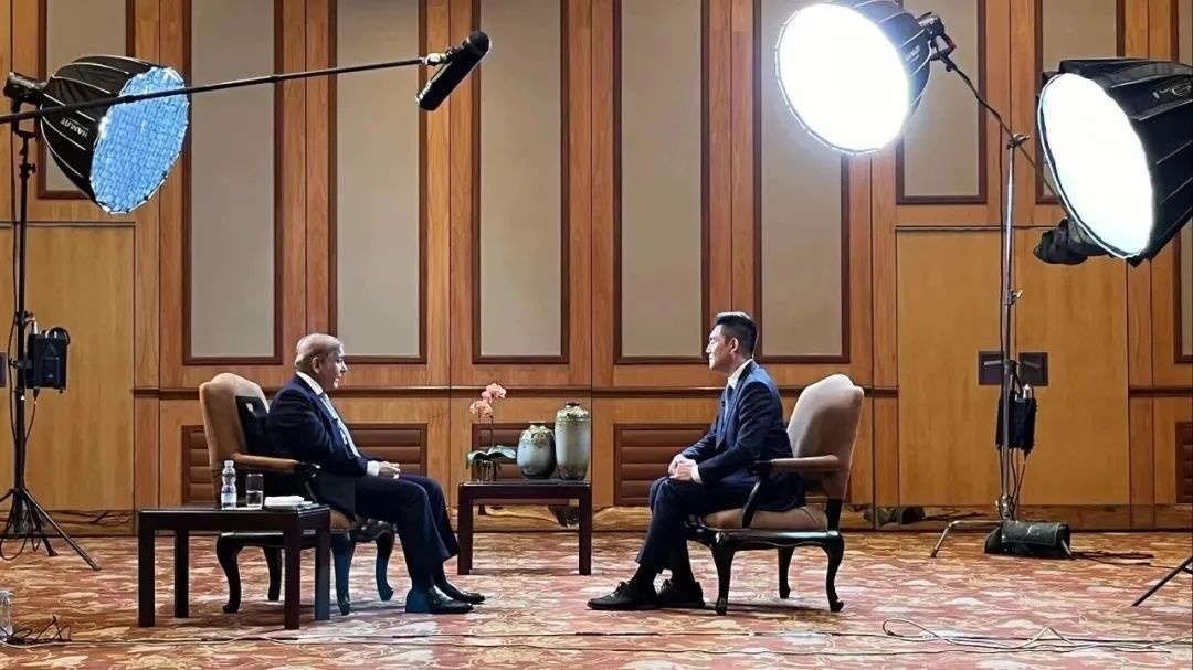 △總臺主持人王冠專訪巴基斯坦總理夏巴茲·謝里夫