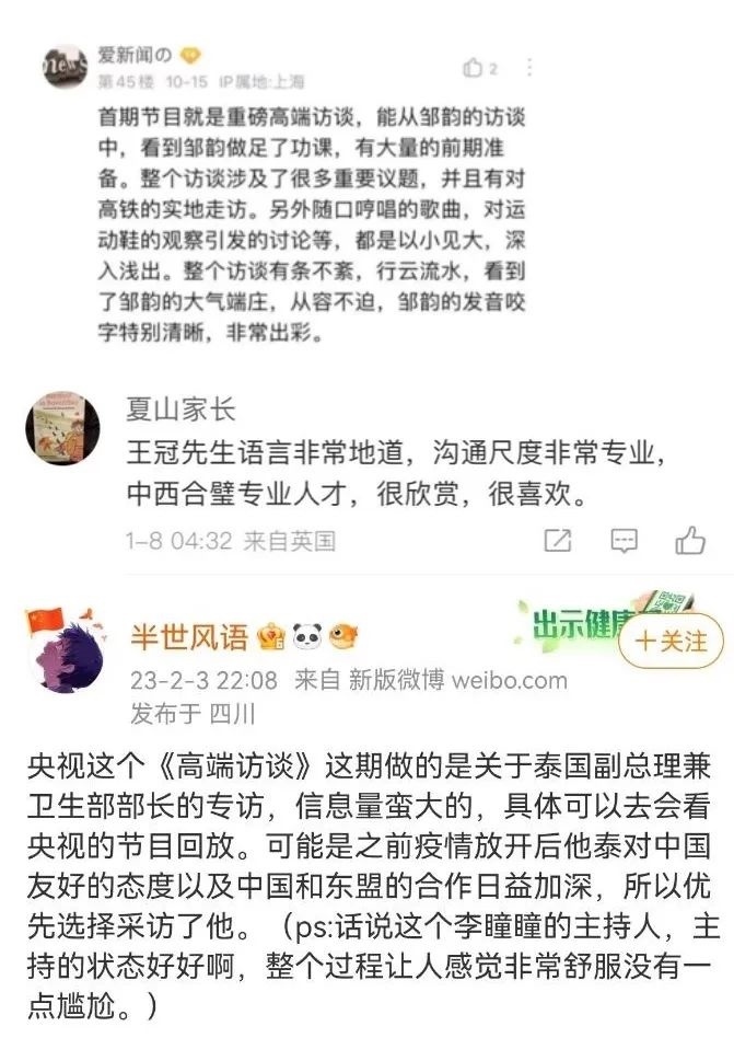 專訪泰國副總理阿努廷時,主持人李曈曈提到,他去機場迎接中國游客的新聞,在中國社交媒體有4.9億閱讀量。阿努廷感動地說,他當(dāng)時說的都是肺腑之言,沒想到會有這么多人看到這條新聞。