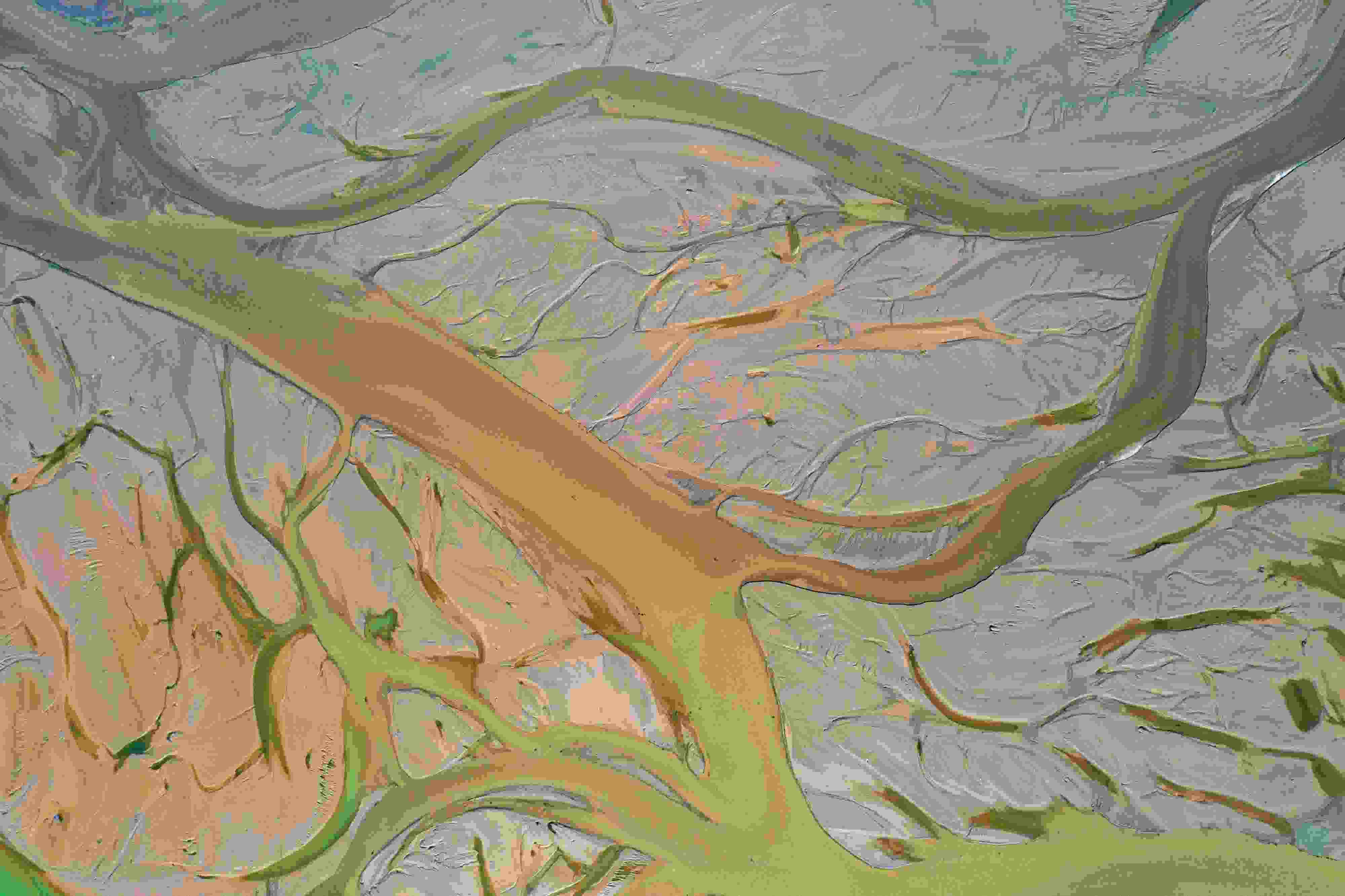 4月16日,山西運(yùn)城,由于黃河上游降雨和庫區(qū)泄水水量增加,黃河永濟(jì)段河床在水流沖刷下河汊縱橫,高空俯瞰宛若“大地血脈”。 視覺中國