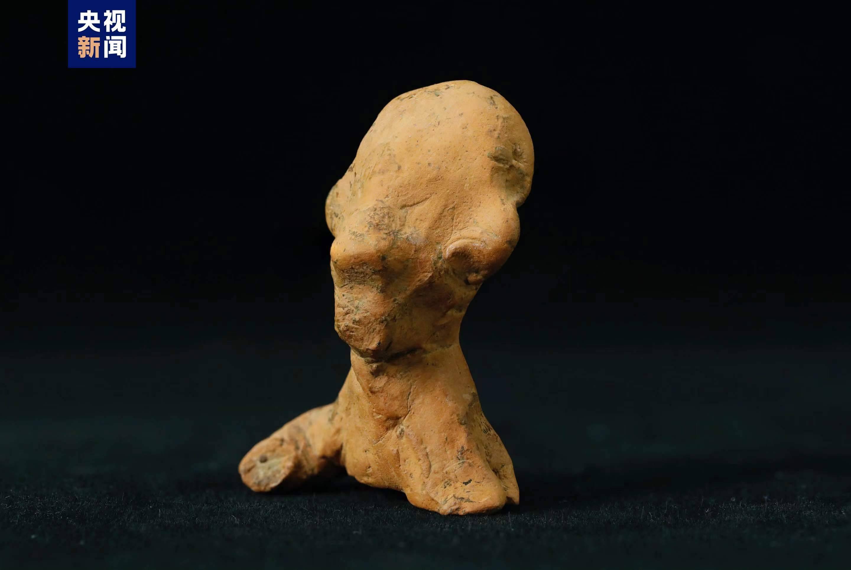 該陶塑人像出土于石家河三房灣遺址地層,距今約4000年。出土?xí)r有殘缺,表面有附著物。文物修復(fù)專(zhuān)家在觀(guān)察陶塑上是否有一些遺留痕跡時(shí),發(fā)現(xiàn)了疑似指紋痕跡。
