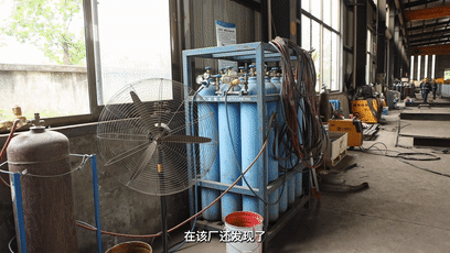 動火區(qū)域與作業(yè)區(qū)域距離嚴重不足,同樣出現(xiàn)在合肥神雕起重機械。聯(lián)合執(zhí)法小分隊發(fā)現(xiàn),該廠的動火作業(yè)點氧切割機與極具揮發(fā)性的噴涂室緊緊毗鄰,且氧氣瓶就放在噴涂區(qū)域旁,具有重大安全隱患??扇嘉铩⒅瘘c、助燃劑,著火的三要素齊聚一堂,很難想象平日在此作業(yè)的工人承擔著怎樣的安全風險。