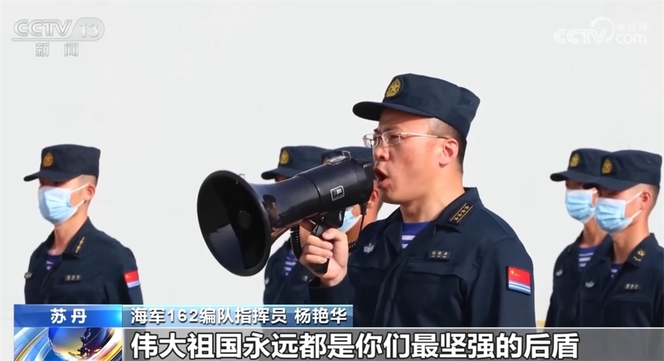 海軍162編隊(duì)指揮員 楊艷華:同胞們,無(wú)論身在何處,偉大祖國(guó)永遠(yuǎn)是你們最堅(jiān)強(qiáng)的后盾,人民海軍永遠(yuǎn)守護(hù)著我們海外同胞的安全和利益。請(qǐng)大家放心,我們來(lái)了,大家安全了!
