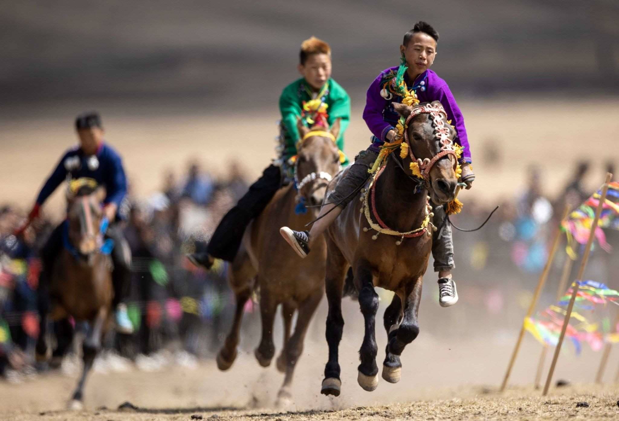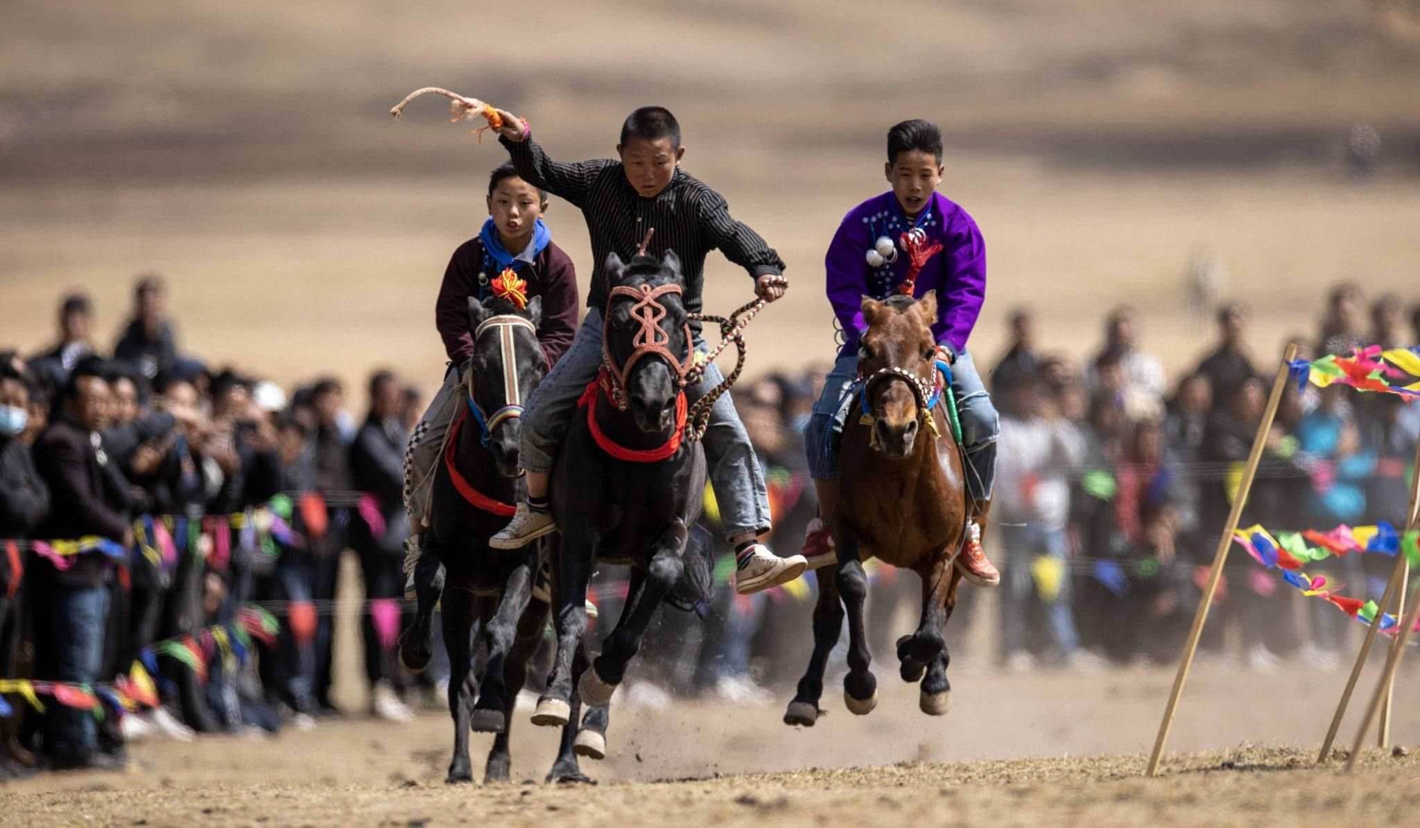 2023年4月25日,四川涼山,普格縣黎安鄉(xiāng)??诹鹤?,傳統(tǒng)的彝族賽馬比賽拉來帷幕。視覺中國