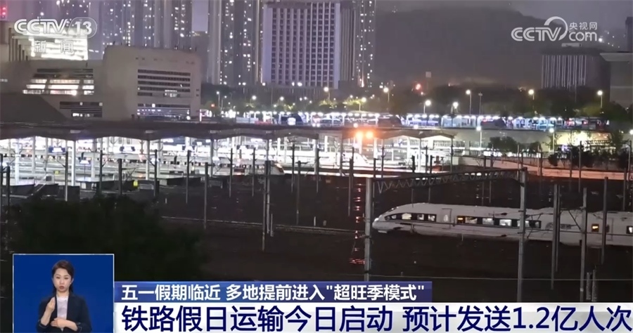 “五一”小長(zhǎng)假期間,全國(guó)鐵路預(yù)計(jì)發(fā)送旅客1.2億人次,較2019年同期增長(zhǎng)20%,超歷史同期最高水平,日均發(fā)送旅客1500萬人次。4月29日為客流最高峰日,預(yù)計(jì)發(fā)送旅客超過1900萬人次,超歷史最高峰日10%以上。