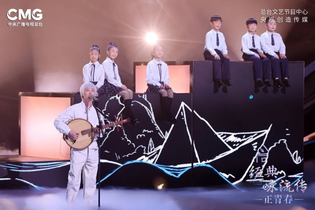 “逝者如斯夫,不舍晝夜?!痹跁r光的流逝中,最值得懷念的是那一去不復返的青春。無數(shù)文人墨客通過文字去珍藏時光的記憶,去尋找青春的蹤跡?!耙蝗~漁船兩小童,收篙停棹坐船中”,宋朝詩人楊萬里用一首清新自然的《舟過安仁》記錄美好童年。而對于很多現(xiàn)代人來說,童謠寄托著童年的回憶?!皩ぶ{計劃”項目發(fā)起人小河將楊萬里的詩詞巧妙改編成童謠,帶來充滿童趣的《搖船》舞臺。當天真爛漫的孩童將詩詞娓娓唱出,瞬間帶領(lǐng)觀眾穿越回詩中場景,也穿越回記憶中的童年?,F(xiàn)場還迎來一位特殊的嘉賓——84歲老人何洪瑞。他與小河還有孩子們一同唱響了記憶深處的童謠《盧溝橋》,此刻,跨越時間的永恒情感就這樣在音符中碰撞、交融。