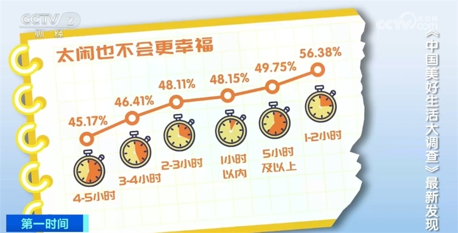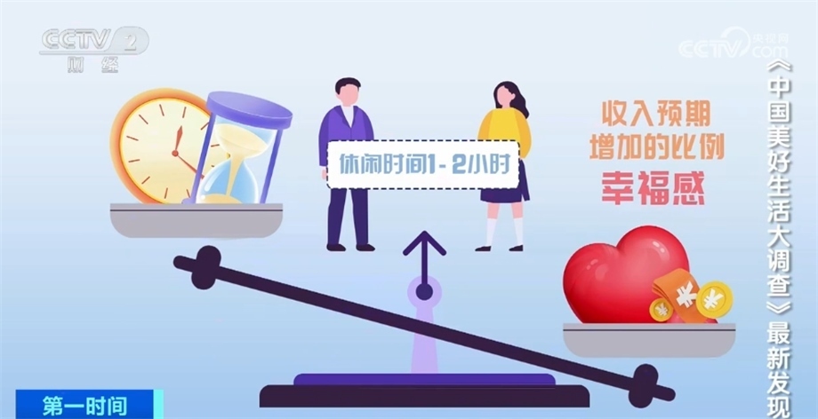 最讓人羨慕的是休閑時間在1—2小時的人群,他們不僅幸福感高,收入預期增加的比例也最高。