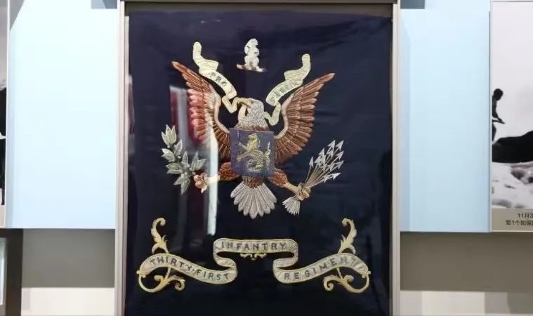 這是陳列在軍博的美軍“北極熊團(tuán)團(tuán)旗”?!犊邕^鴨綠江》真實還原了長津湖戰(zhàn)役中,志愿軍全殲美北極熊團(tuán)并繳獲其團(tuán)旗的全過程。