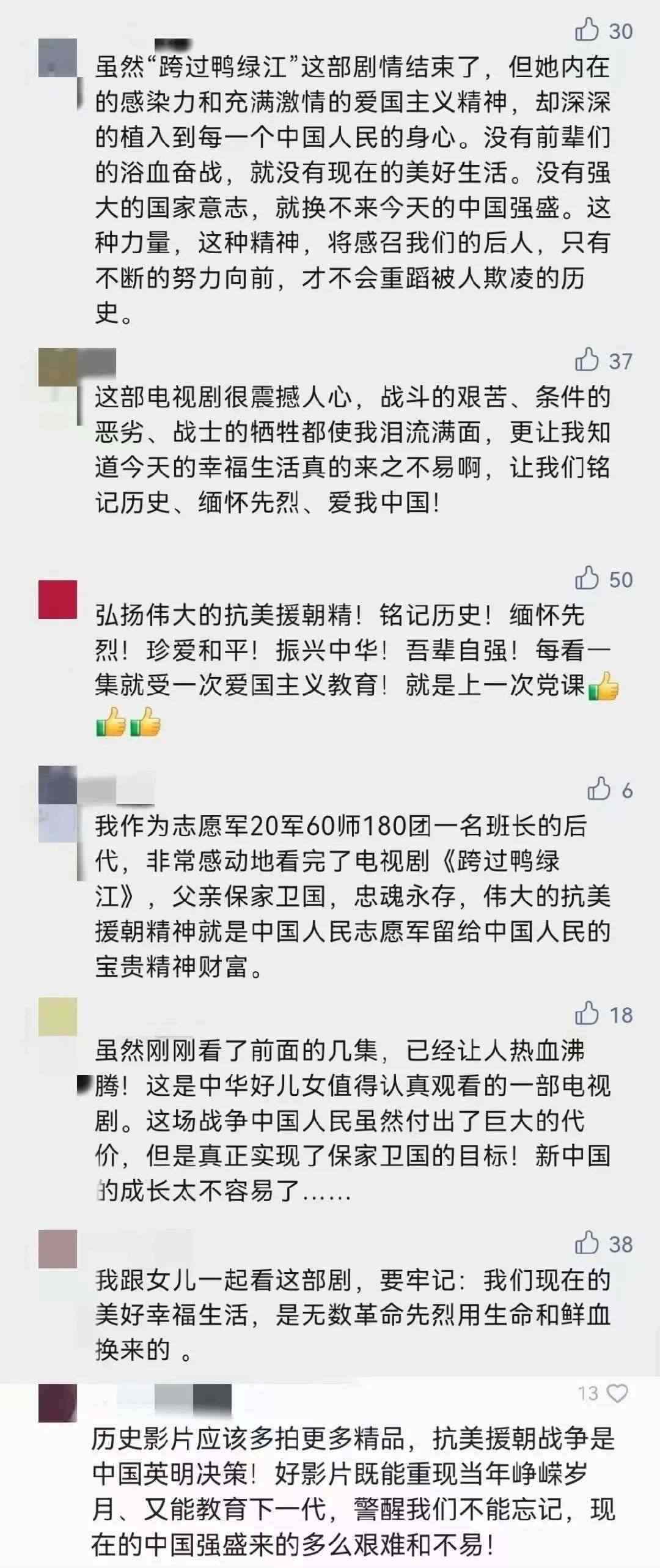 “抗美援朝絕對是值得紀(jì)念和謳歌的奇跡!這部電視劇是一部愛國主義教育的活教材!”這是網(wǎng)友對這部劇的評價。