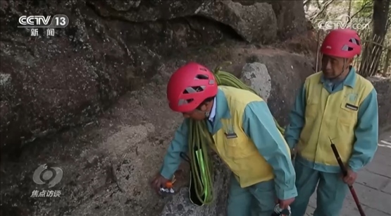 李培生:“放繩索是我們的本職工作,我們要把本職工作做好,不管哪里有垃圾,放得再長、再險的地方,我們只要看到垃圾,就必須去撿起來,我們要把黃山保護好。”