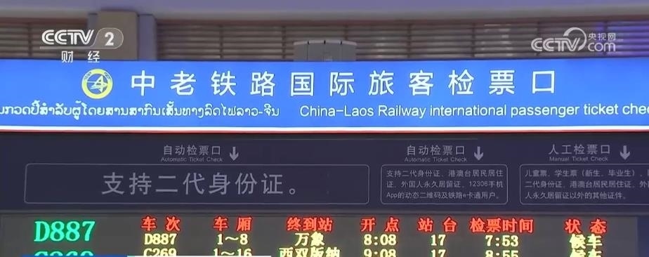 記者 范紫霄:現(xiàn)在是中午12時(shí)30分,這趟列車已經(jīng)到達(dá)了磨憨站,也是這趟列車在我國境內(nèi)的最后一站。跨境前往老撾的旅客需要攜帶全部行李下車辦理通關(guān)等一些相關(guān)手續(xù),然后繼續(xù)返回這列我們乘坐的D887次列車,通過畫面中的友誼隧道,跨越國境,在今天傍晚6時(shí)38分抵達(dá)老撾首都萬象。