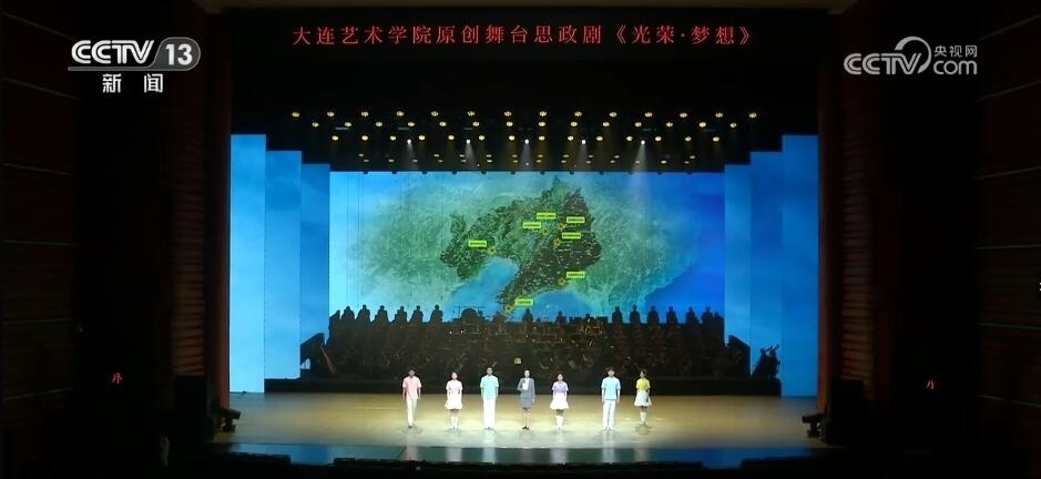 在遼寧,由大連藝術(shù)學院原創(chuàng)的大型舞臺劇《光榮·夢想》在大連、沈陽等地上演。舞臺劇以“九一八”事變?yōu)闅v史背景起點,生動再現(xiàn)了東北人民抗日、解放戰(zhàn)爭等紅色故事。近千名參演師生融合交響樂、朗誦、舞蹈等多種藝術(shù)表現(xiàn)形式,引起現(xiàn)場觀眾強烈共鳴。