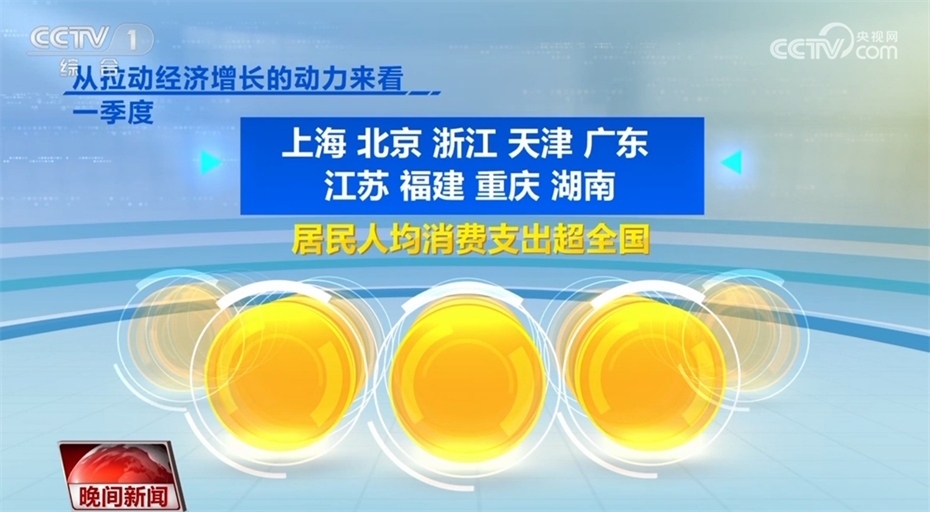 此外,各地經(jīng)濟(jì)發(fā)展也呈現(xiàn)回升向好態(tài)勢(shì)。目前,全國(guó)31個(gè)?。▍^(qū)、市),已經(jīng)全部公布一季度的經(jīng)濟(jì)運(yùn)行數(shù)據(jù)。從GDP增速來(lái)看,31個(gè)省(區(qū)、市)中有23個(gè)省份跑贏全國(guó)一季度GDP平均增速4.5%,從地區(qū)GDP總量看,有12個(gè)省份超1萬(wàn)億,廣東超過(guò)了3萬(wàn)億。從拉動(dòng)經(jīng)濟(jì)增長(zhǎng)的動(dòng)力來(lái)看,一季度,上海、北京、浙江、天津、廣東、江蘇、福建、重慶、湖南9省份,居民人均消費(fèi)支出超全國(guó)。