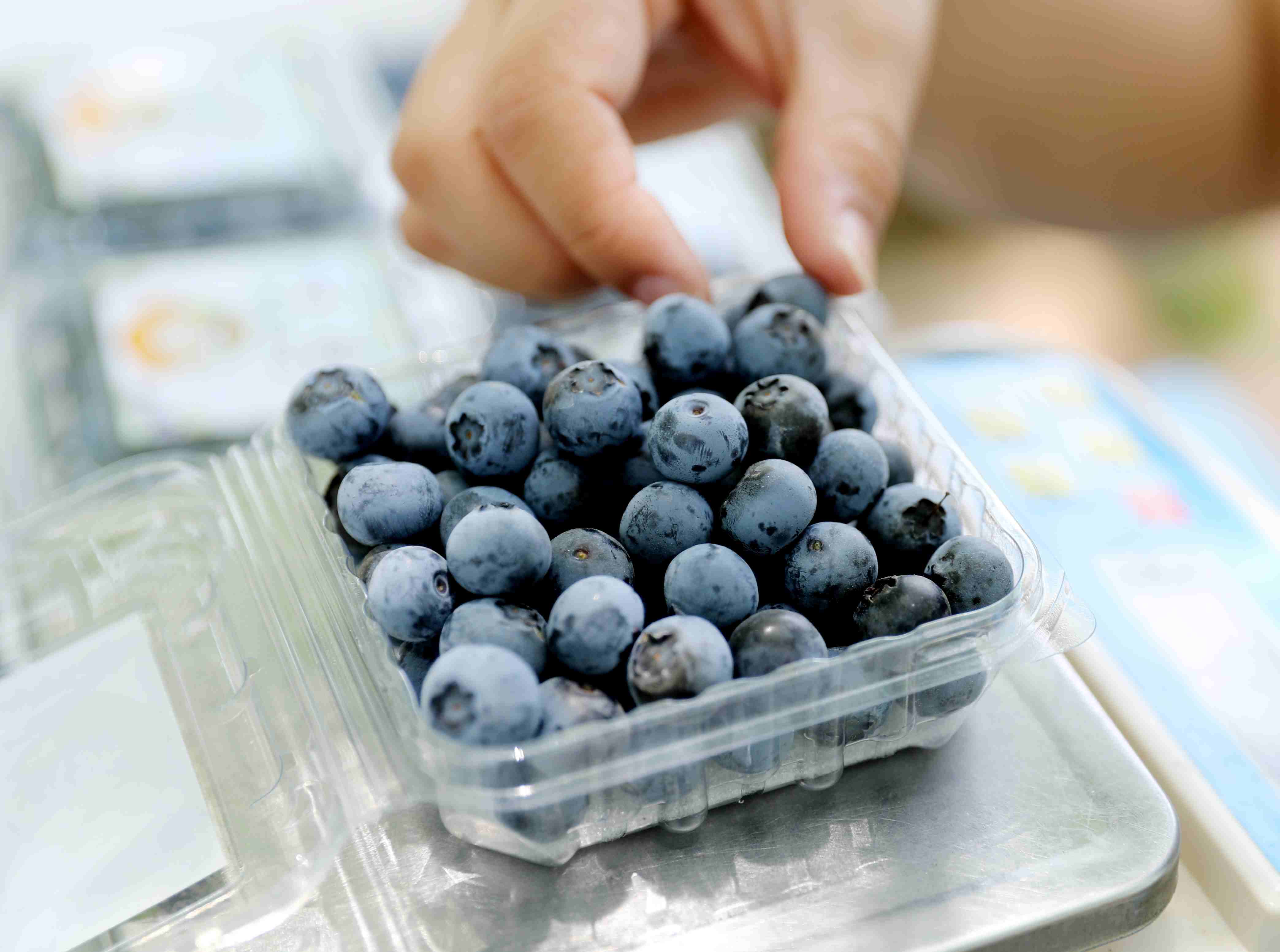 5月7日,青島西海岸新區(qū)寶山鎮(zhèn)一種植戶在分裝藍(lán)莓。 張進(jìn)剛 攝