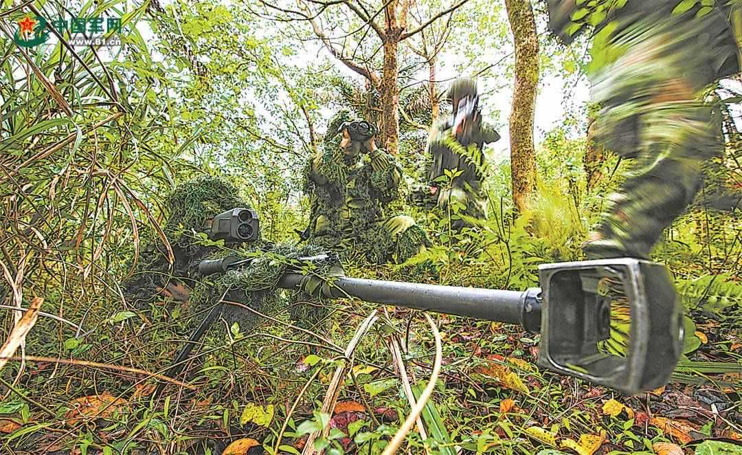 引擎轟鳴,鐵翼飛旋。直升機(jī)到達(dá)預(yù)定空域后,偵察隊(duì)員接續(xù)索降,落地后迅速組成戰(zhàn)術(shù)隊(duì)形進(jìn)行滲透。叢林深處,狙擊組快速占領(lǐng)狙擊陣位,警戒組持續(xù)監(jiān)視“敵”動(dòng)態(tài),偵察組前出偵察,并將目標(biāo)信息快速上報(bào)指揮所。