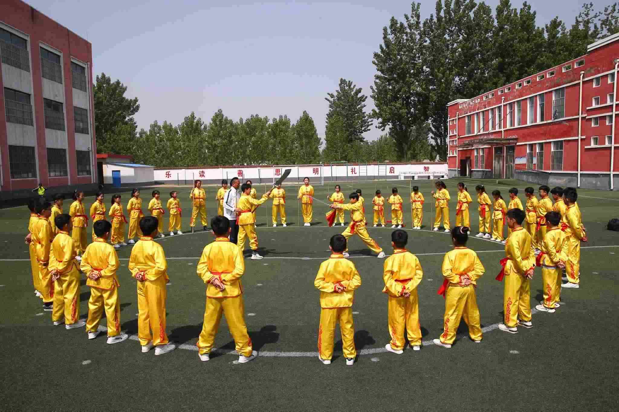近年來,臨沂市蘭陵縣韓塘小學將傳統(tǒng)武術引進校園,選擇武術操作為“陽光大課間”特色項目,組建社團進行武術訓練,在豐富學生課余生活、提高身體素質的同時,傳承傳統(tǒng)武術文化。視覺中國